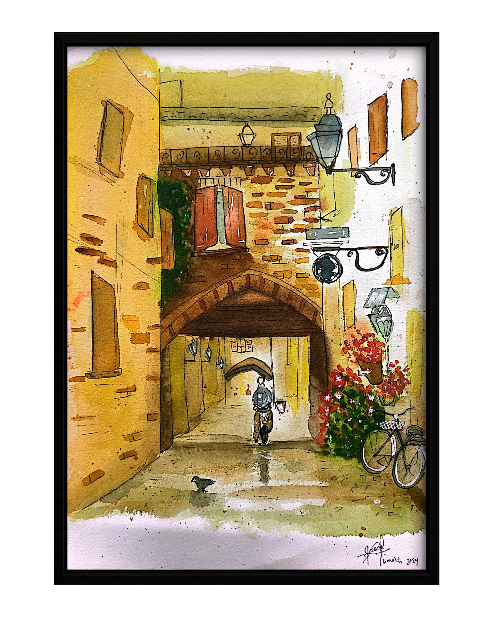 The art has depicted the dream vacation city of many. The famous city of Rome is full of small streets full of life, sunny days and filled with relics from the past generations. From the lights to the street lamps this art gives a glimpse of the city.